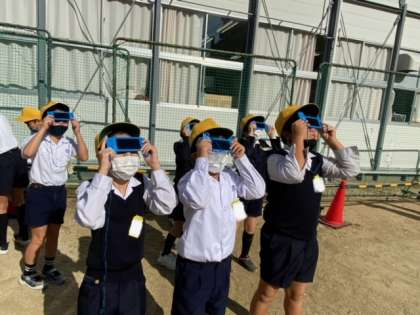 理科で「太陽」につての学習を行っていいます。今日は遮光板を使って太陽を観察しました。