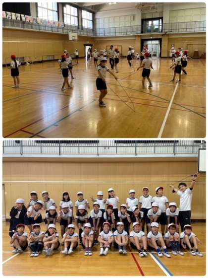 難しそうな技も分かりやすく教えていただき、子どもたちは楽しそうになわとびの練習を行っていました。最後のポーズの仕方も教えていただき、みんな必死に練習していました。