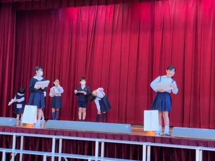 3年生の舞台練習も始まりました。今日は主に自分が立つ位置の確認と声の大きさの確認です!