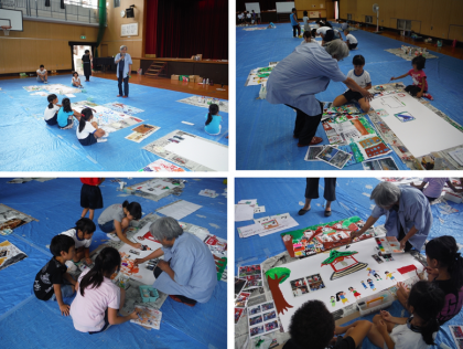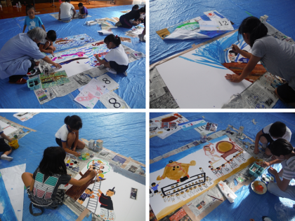 ぜひとも参加したい!という意欲のある子どもたちが講堂に集まりました。子どもたちは目を輝かせながら描き進めていきます。