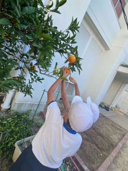 1年生に引き続き、6年生もミカンを収穫しました。自分で好きなミカンを選んで収穫していました。なんだかみんなとても嬉しそうでした。