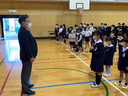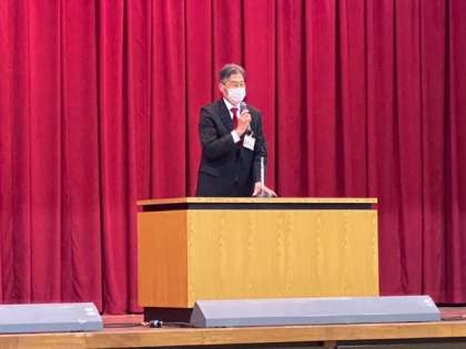 前田区長のお話は、2つの頑張ってほしいことについてのお話でした。1つ目は「自分から進んであいさつをすること」2つ目は「感謝の言葉を忘れないこと」というお話でした。