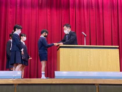 その後「ギャラリー表彰」がありました。一人一人校長先生から賞状を受け取りました。