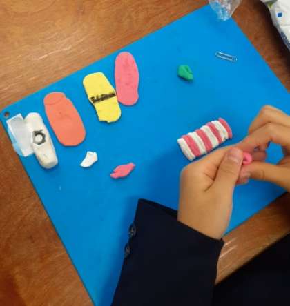 絵の具を練り込んで色を付ける作業も、こねて形を作る作業も楽しんでいます。