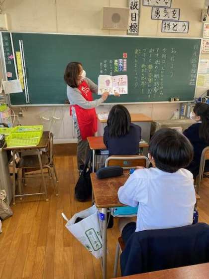 6年生の教室では、ヨシタケシンスケさんの「ころべばいいのに」の読み聞かせをしていただきました。