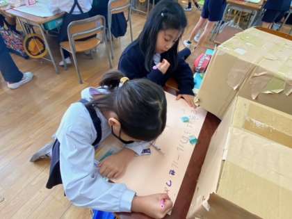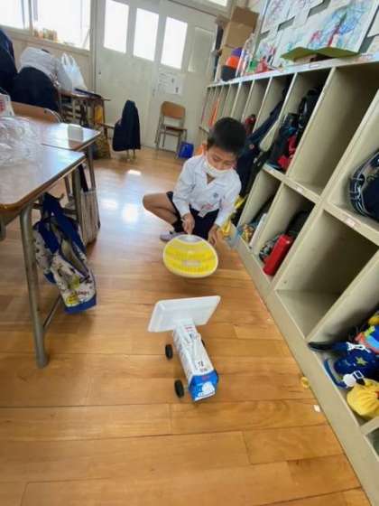 うまくおもちゃであそべるかしっかり確かめています。また、出来上がったグループは、おもちゃの説明をかいていました。楽しいおもちゃフェスティバルができそうですね!!