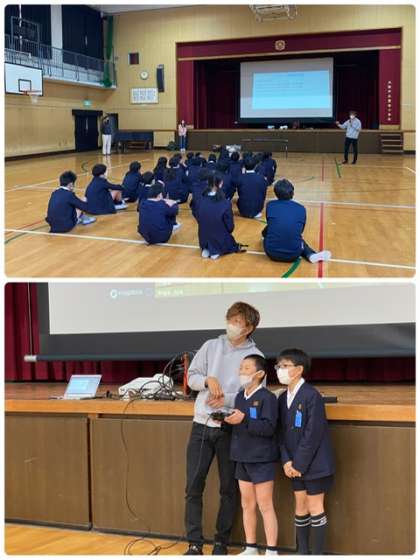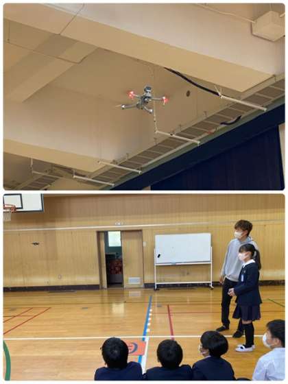 今日は「京奈 DRONE STATION」をゲストティーチャーにお迎えしてドローン体験を実施しました。自分たちでプログラミングして実際に飛ばしてみたり、コントローラーで操作しながら飛ばしてみたりしました。みんな楽しくドローンを飛ばしていました。
