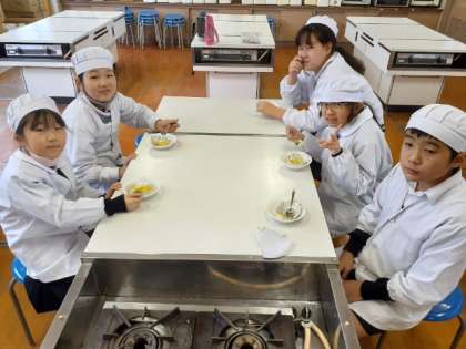 さつまいもの皮むきから最後の片付けまで班で協力して調理をしました。