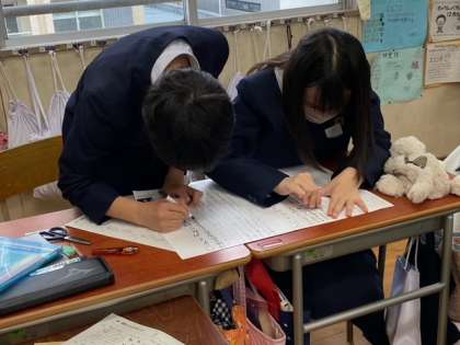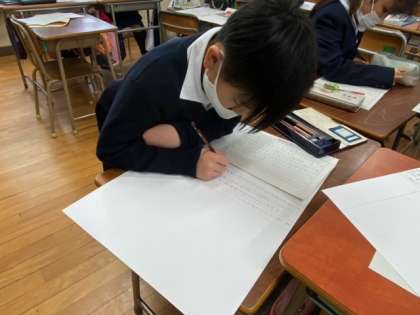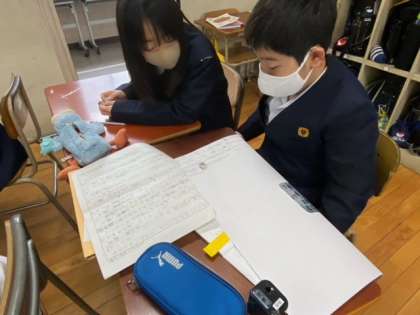 今回は班で新聞を作っていま。しっかり自分の担当の記事をまとめていました。
