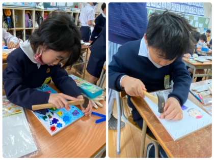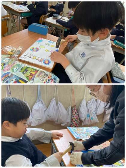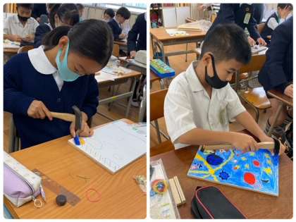 図画工作科の時間に「くぎうちトントン」を作成しています。