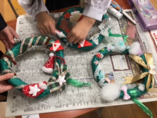 12月14日「クリスマスリースづくり」【図画工作科】《1年生》