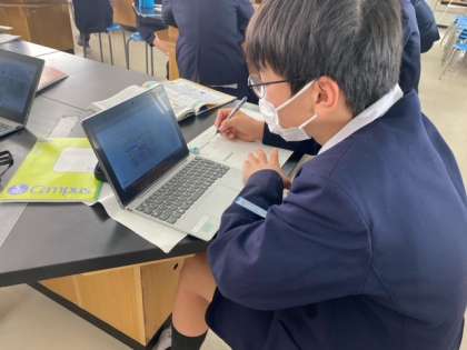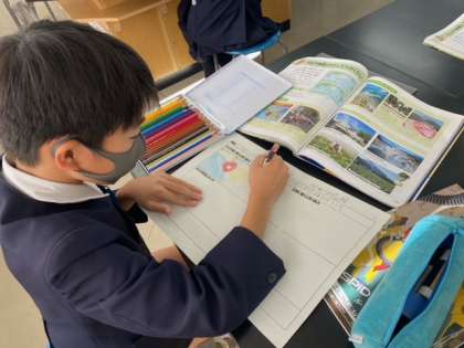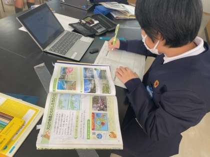 火山活動や地震が多い日本、災害に備えた取り組みなどを学習しています。今日は学習したことをタブレットや教科書など使用しながら調べ学習をしていきました。