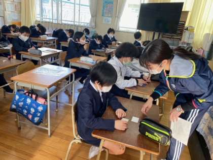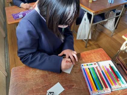今日はいつも美味しい給食を作ってくださっている調理員さんに感謝のメッセージカードをかいていきました。1月に給食集会があるので、その時に手渡すメッセージです。みんな日ごろの感謝の気持ちをこめてメッセージをかいていました。
