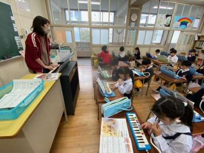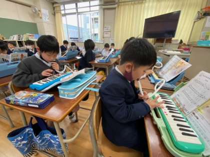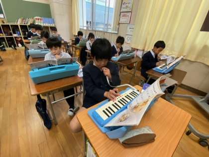 音楽の時間に鍵盤ハーモニカで「こぎつね」の曲の練習をしました。
