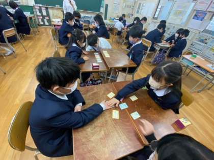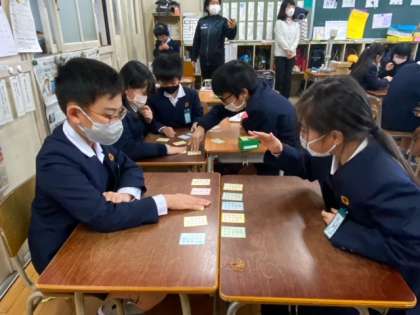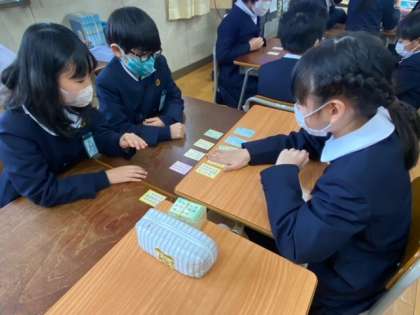 4年生の子どもたちが国語で学習している百人一首を実際にやっていました。
