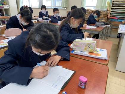 今日は帯分数の計算の学習を行いました。整数と分数で分けて計算すると計算がしやすいことに気が付き、みんなスラスラと計算していました。帯分数を仮分数に直すのには少し苦手意識をもつ子もいますが、何度も計算するとすぐにわかるようになります!!