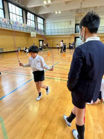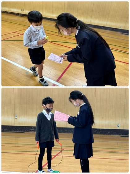今日のチャレンジなわとびは2年生でした。たくさん練習をして、自信がついたらお兄さんお姉さんに数えてもらっている子もいます。自信がついて、少し難しい跳び方にチャレンジしている子もいました!