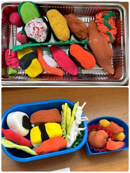 図画工作でつくっていた「マイオリジナル弁当」が完成しています。