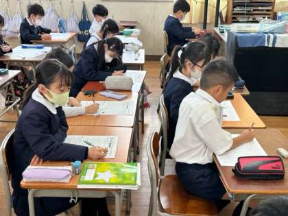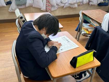 学習のまとめのテストをおこないました。みんな一生懸命問題を解いていました。