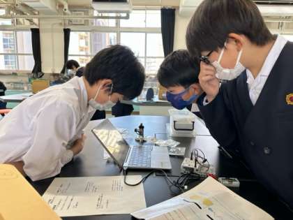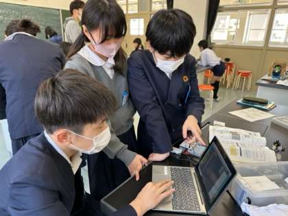 今日はさっそく理科の学習で「プログラミング」の授業を行いました。ICT支援員さんにも入っていただき、電気のプログラミングについて学習しました。