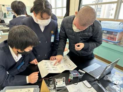 電気を無駄なく使うために、人の動きを感知したときに自動的に明かりがつくようにするプログラミングです。周りの様子をセンサーで読み取って、あらかじめ教えていた「動作させる条件」に合うかをコンピューターに判断させ自動的に明かりをつける動作をさせるというものです。「人感センサー」や「明るさセンサー」をつかってプログラミングを行っていきました。