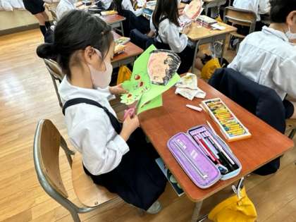 今日の生活の時間は、卒業する6年生と入学してくる新1年生に「おめでとうを」を伝えるためのメッセージを作っていきました。