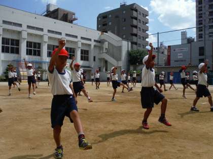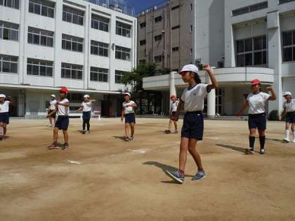 3年生と4年生の運動会の練習です。団体競技の入退場の仕方を練習した後,「LIFE IS A PARTY」(ダンス)の練習もしました。