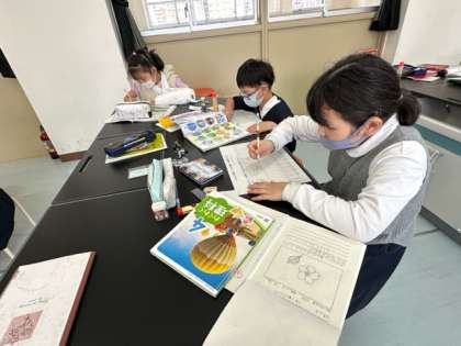 1年間で学んだ生き物の様子をまとめていきました。植物だったり生物だったり、自分が興味あることをワークシートにまとめていきました。