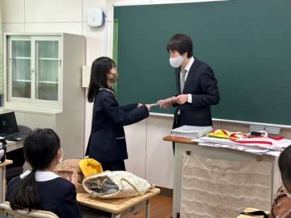 一人一人担任の先生から修了証を渡してもらいました。一人一人先生からみんなの頑張りを伝えてもらいながら手渡されていました。