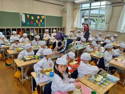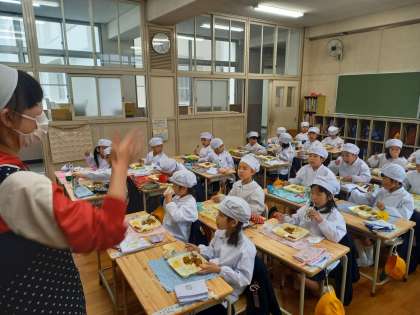 大好きな「カレー」にデザートまでついて、子どもたちはとても満足げに給食をいただきました!