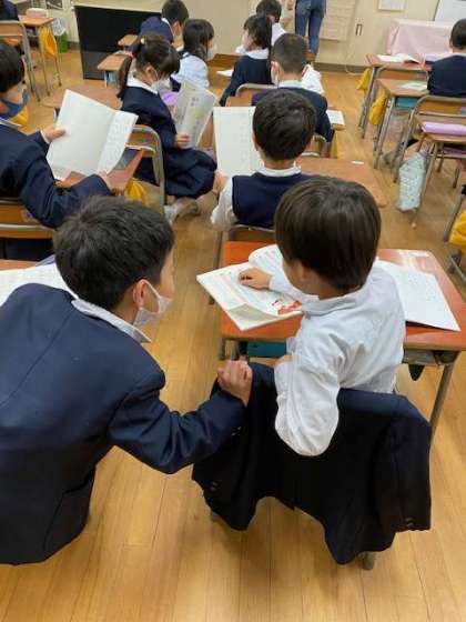 2年生は、「2人で楽しくやりとりするには、どうすればよいかな」とみんなで話し合っていました。