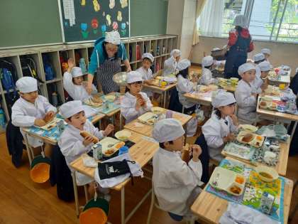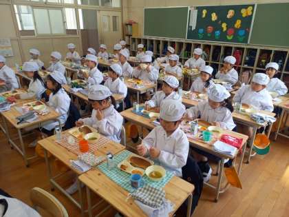 1年生は、今週、小学校での給食初体験でしたが、毎日、美味しそうに食べている姿が見られて、とてもうれしかったです!