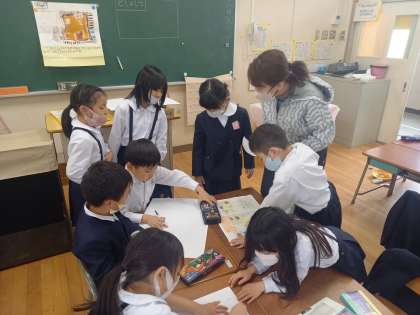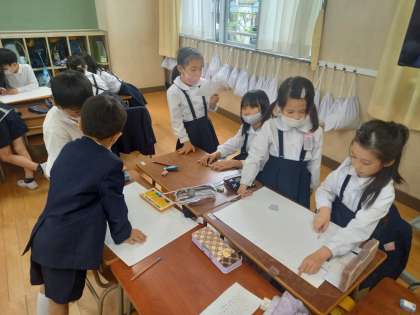 1年生はまもなく「がっこうたんけん」をして、豊崎小学校にはどこにどんなお部屋があるのか見学にまわるのですが、その案内役をするのが2年生です!