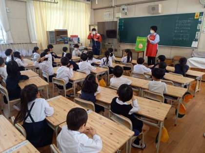 今日は地域のボランティア団体「えことば」さんにお越しいただき、朝の会の時間を使って本の「読み聞かせ」をしていただきました。