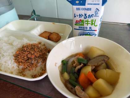 紅鮭そぼろをごはんにふりかけて食べるので、みんなごはんがすすんでいましたよ!