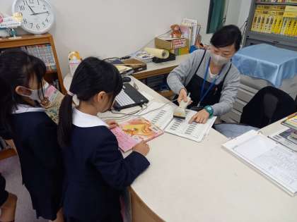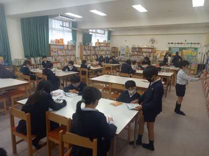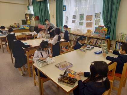 今日は司書の先生から、図書室の使い方や本の探し方など、様々なことを教えてもらった後、さっそく子どもたちは読みたい本を探し、「読書」の時間を楽しみました。