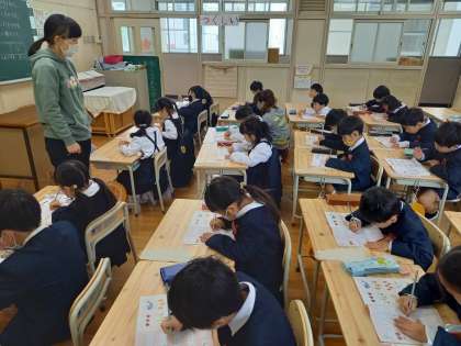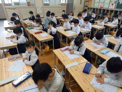 1年生は国語と算数の時間、「ひらがな」と「すうじ」を学ぶ学習をしています。