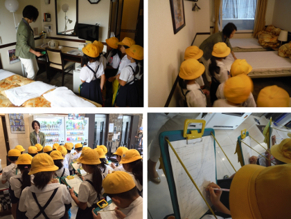 次に,ツインとシングルの客室を見せていただき,それぞれの部屋の違いに驚きを見せている子どもや,家とはちがう部屋の中に思わず