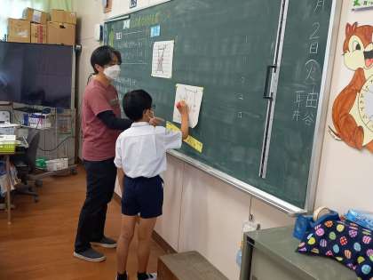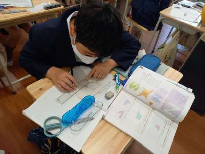 6年生は算数の時間に「点対称な図形」を学習しています。