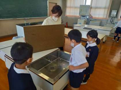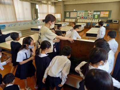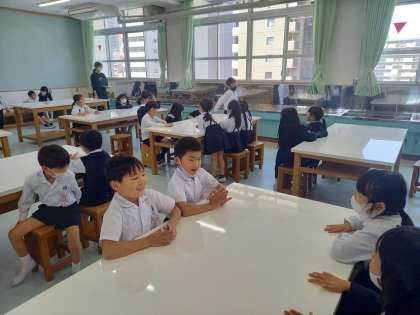 今年、新校舎が完成し、案内役をする2年生自身もまだあまり行ったことがない教室があるため、今日は“学校たんけんの下見?”に出かけました。