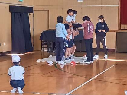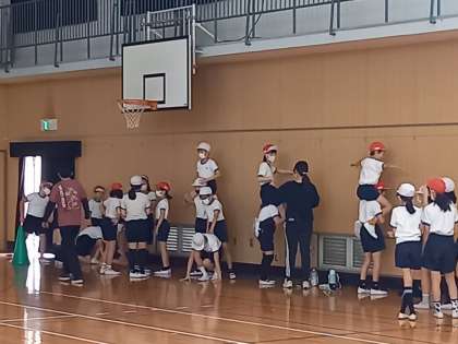 今日は3・4年生が運動場で、5・6年生が講堂で練習をしていました。