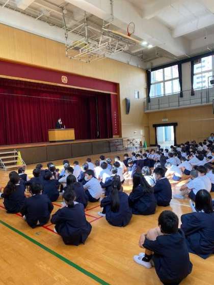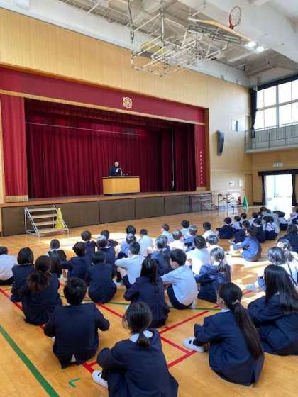 次に、あんまち隊の方に来ていただき、知らない人には絶対に付いて行かないといった安全についてのお話がありました。