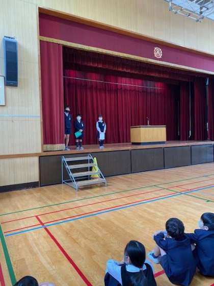 最後に、「ひとりひとこと」です。5.6年生の3人が、この一年頑張りたいことを大きな声で言うことができていました。