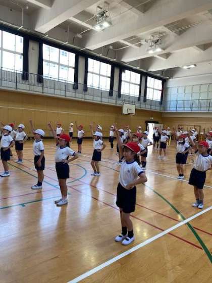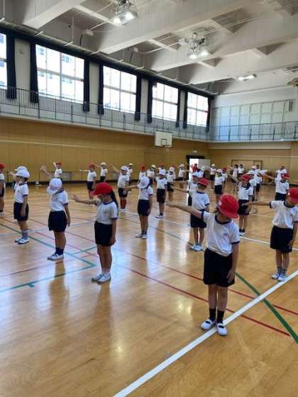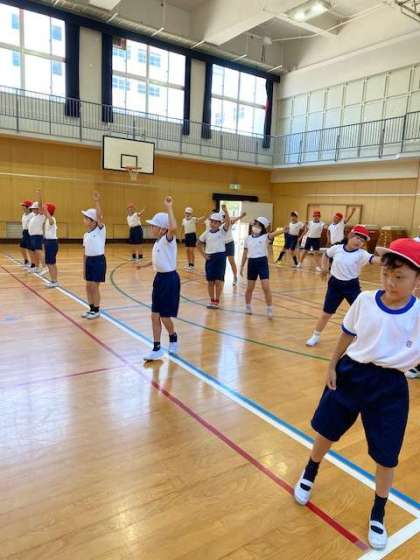 体育館では、3・4年生が、運動会のダンスの練習をしていました。今週から本格的に練習に取り組み始めたところなのに、みんなもうしっかり動きを覚えて、かっこよくダンスを踊っていました。