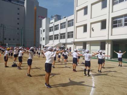 運動会に向けて、「ラジオ体操集会」が行われました。