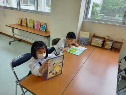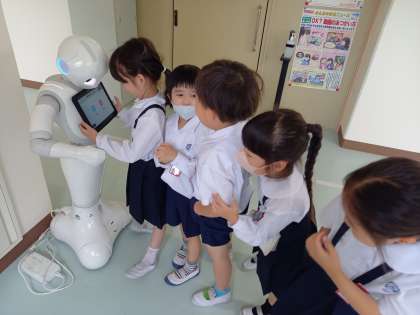 運動場に出ることができませんので、低学年・高学年とも、職員室や教室前の読書スペースで本を読んだり、“ペッパーくん”とお話をしたりと、思い思いにゆっくりと過ごす姿が見られました。