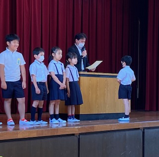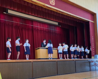 一人一人、校長先生から作品名を披露してもらい賞状を受け取ります。みんなとても素敵な作品でした。