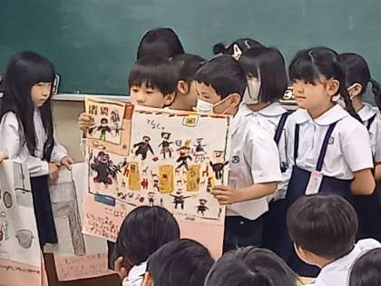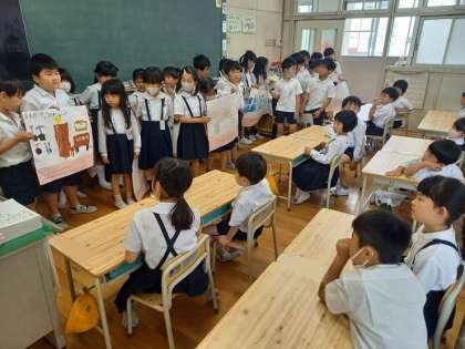 この日のために、2年生は自分が紹介する場所の絵を描いたり、説明するための原稿を書いて読む練習をしたりと、頑張ってきました。