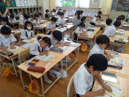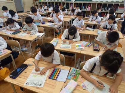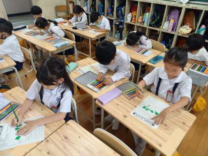 1年生は生活科の時間に、「あさがお」の成長の記録をつけていました。