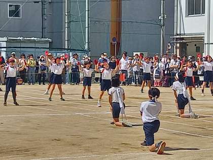 雨で順延となっていた運動会が、豊崎小学校の運動場で行われました。